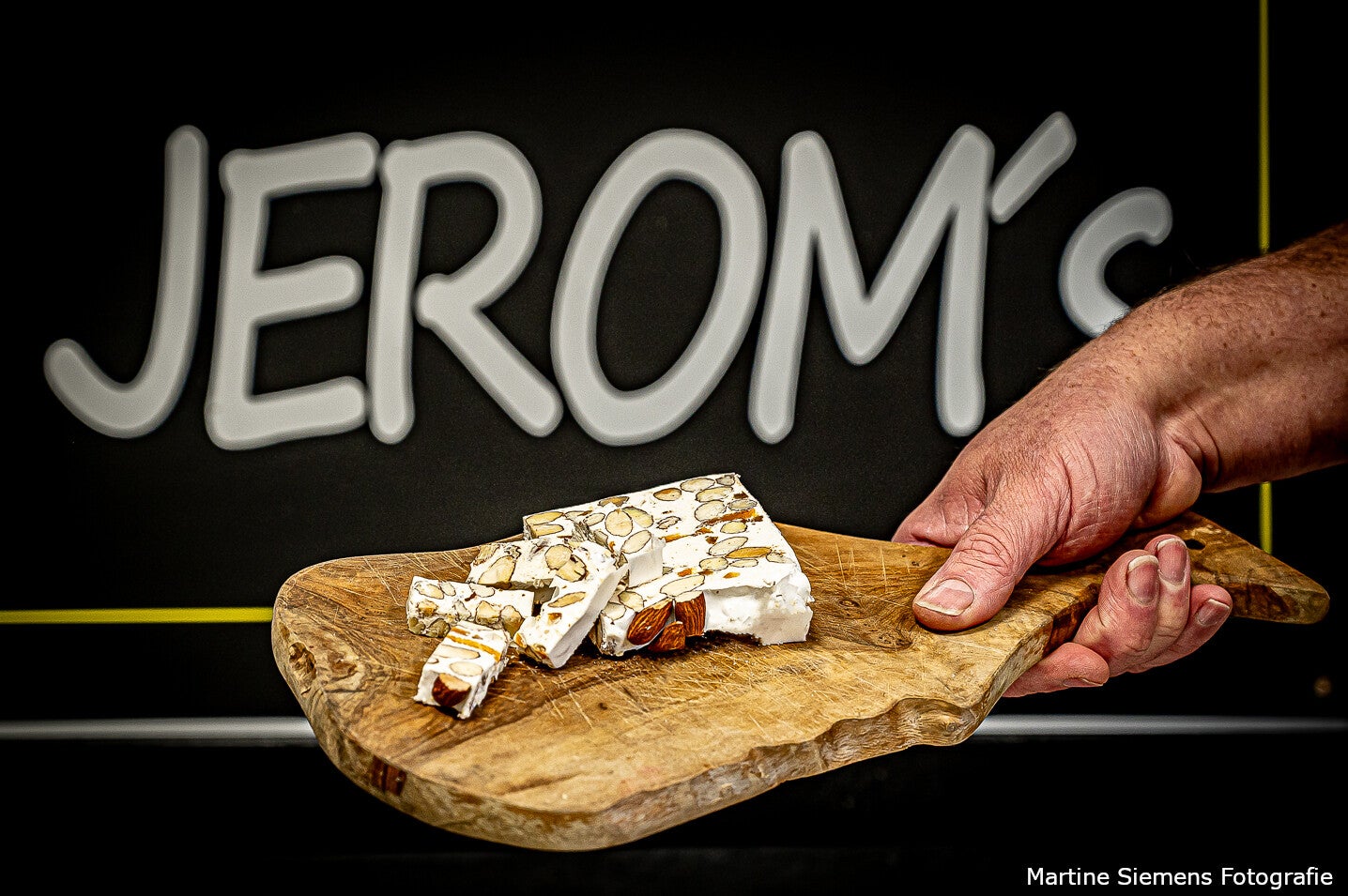 Nougaterie Jerom's is gevestigd in Vierakker, de Achterhoek. En is de enige echte nougaterie van Nederland. Jerom produceert streekproducten en werkt duurzaam, daar waar dat kan. De noga van Jerom mag gerekend worden tot de nougat van de hoogste kwaliteit. In de producten van Jerom’s worden geen kunstmatige toevoegingen verwerkt als kunstmatige emulgatoren, kleur-, geur- en smaakstoffen.